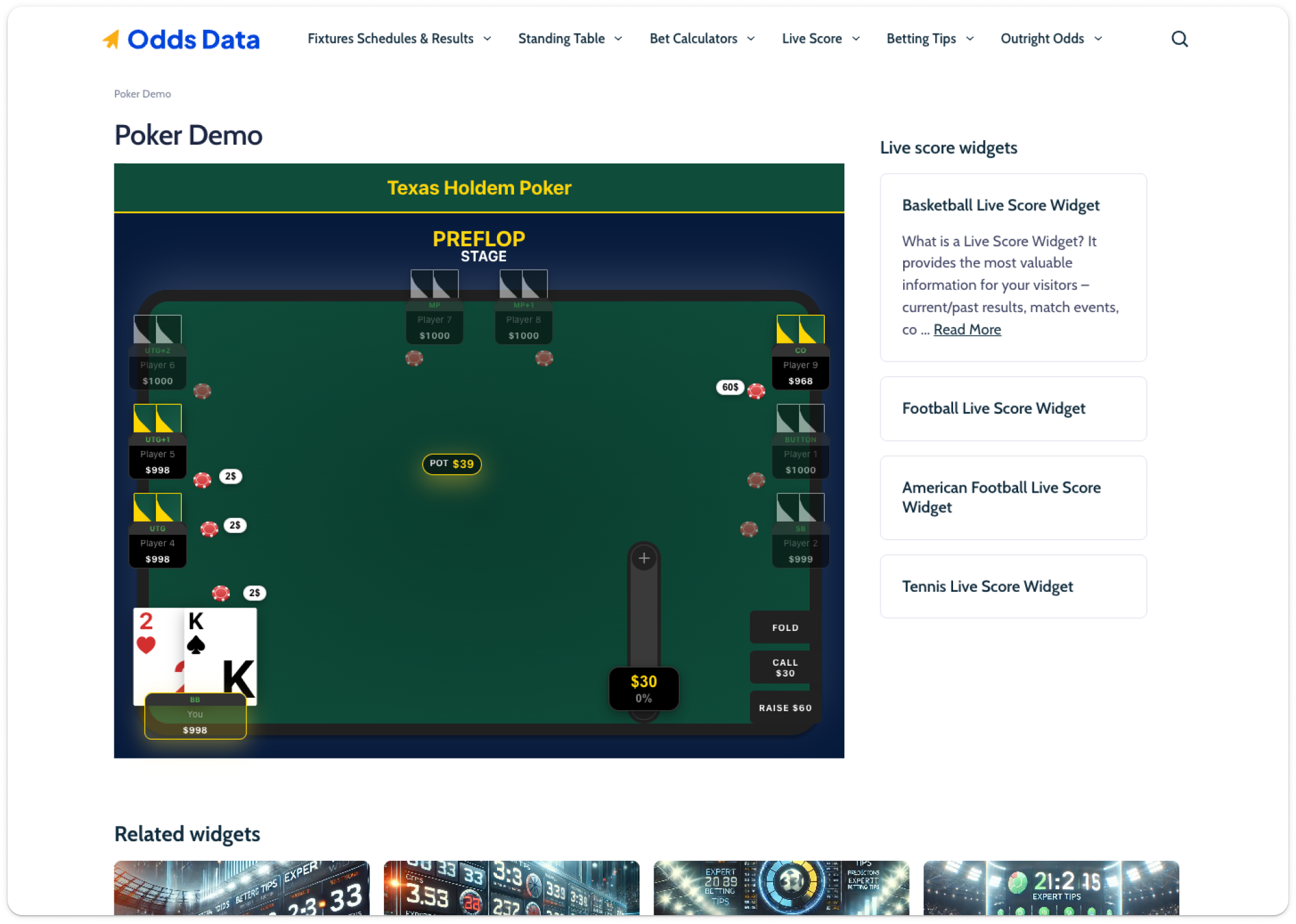 The desktop version could not be designed as a scaled-up mobile layout. The plugin embeds inside Odds Data article pages,a two-column layout with a sidebar (live score widgets, related widgets). The dev team's previous attempt had simply stretched the mobile layout horizontally, wasting screen real estate and breaking spatial relationships between players.