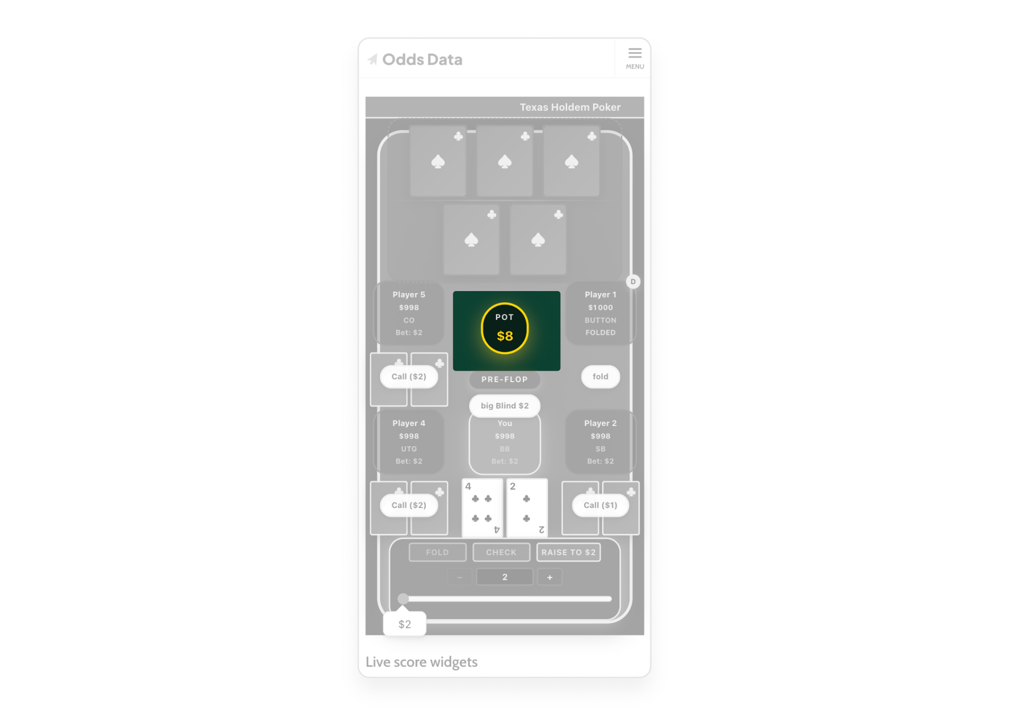 With the PM aligned on scope, the rebuild began from zero. The starting point was not the existing design it was the constraints: how do you fit 9 players, a full board, a pot, betting controls, and a raise slider onto a 375px wide screen, inside a scrollable web article, without breaking a single interaction? This is a harder problem than it looks. Real poker apps sidestep most of these constraints because they are native apps with full screen ownership. This plugin had none of those advantages.