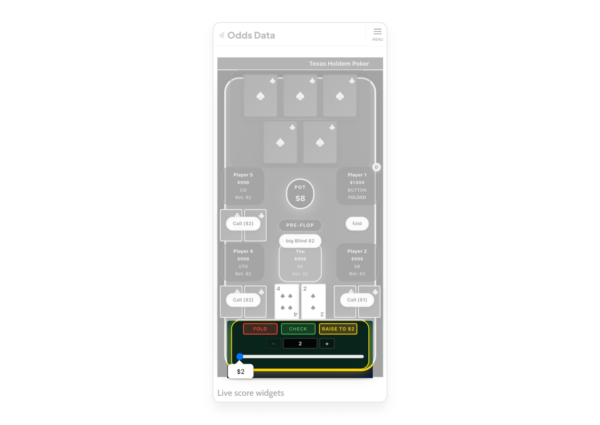 With the PM aligned on scope, the rebuild began from zero. The starting point was not the existing design it was the constraints: how do you fit 9 players, a full board, a pot, betting controls, and a raise slider onto a 375px wide screen, inside a scrollable web article, without breaking a single interaction? This is a harder problem than it looks. Real poker apps sidestep most of these constraints because they are native apps with full screen ownership. This plugin had none of those advantages.